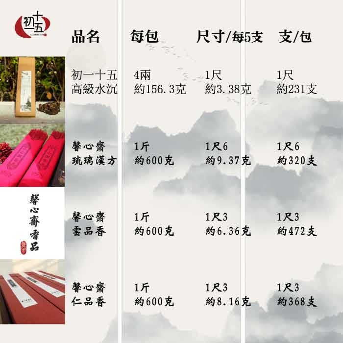 初一十五委由迪化街老香舖合作,師傅有超過三十年的經歷,走遍各國尋找優良原料,長期維持穩定的品質,值得您的信賴與品味。 不添加化學品,味道舒服不刺鼻、刺眼,是禮佛的好選擇。