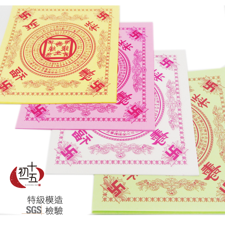 蓮花紙,在台灣有2種,一種為往生,意思即為獻給祖先或過世的親人、寵物等,上面會印極樂世界四字。而壽生蓮花,則是印福祿延壽,同時上方也是有佛經。